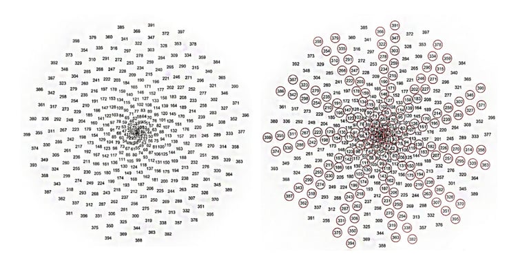Geometric study of algorithmic model of phyllotaxis pattern by mimicking the spiral arrangement matrix. (Visual algorithmic programs; Rhinoceros/Grasshopper). Source: Generative Algorithmic Design by Nessreen Y. Ibrahim (Author).
